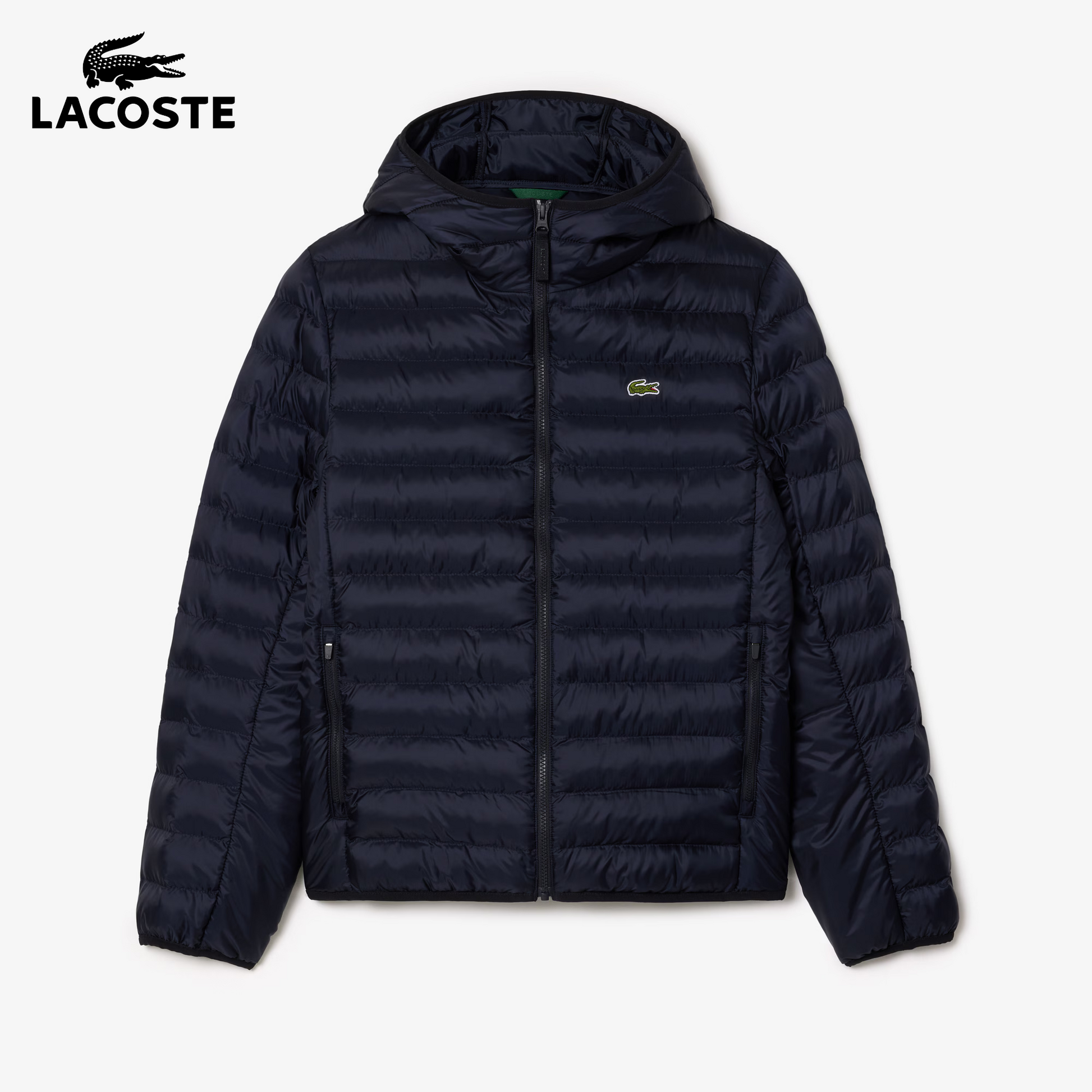 Elastic cuffs and hem provide a secure fit, while two zip side pockets add everyday practicality. The embroidered signature detail on the chest completes the look with distinction.